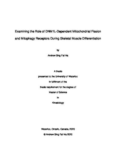 Examining the Role of DNM1L-Dependent Mitochondrial Fission and Mitophagy Receptors During Skeletal Muscle Differentiation