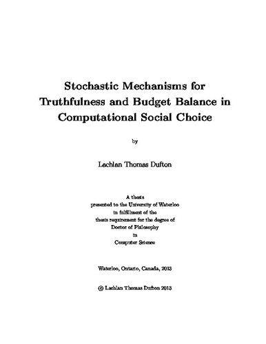 In this thesis, we examine stochastic techniques for overcoming game theoretic and computational issues in the collective decision making process of self-interested individuals. In particular, we examine truthful, stochastic mechanisms, for settings with a strong budget balance constraint (i.e. there is no net flow of money into or away from the agents). Building on past results in AI and computational social choice, we characterise affine-maximising social choice functions that are implementable in truthful mechanisms for the setting of heterogeneous item allocation with unit demand agents. We further provide a characterisation of affine maximisers with the strong budget balance constraint. These mechanisms reveal impossibility results and poor worst-case performance that motivates us to examine stochastic solutions.