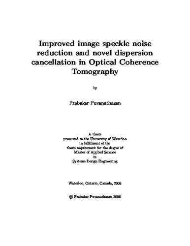 Improved image speckle noise reduction and novel dispersion cancellation in Optical Coherence Tomography