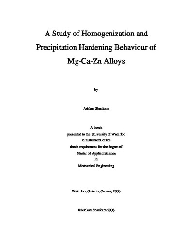A Study of Homogenization and Precipitation Hardening Behaviour of Mg-Ca-Zn Alloys