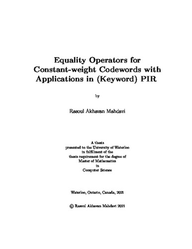 Equality Operators for Constant-weight Codewords with Applications in (Keyword) PIR