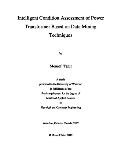 In recent years, the trade-off between quality and cost of power system components has become a matter of interest for many utilities. The widespread use of costly electricity networks either in residential or industrial areas has encouraged service providers to find a proper strategy that will minimize the overall life-cycle cost while keeping components in good working condition. The power transformer, which represents approximately 60% of the overall cost of the network, is ranked as one of the most important and expensive components. However, the transformer's sudden failure puts the system in a serious or critical condition which in most cases causes catastrophic loss to both utilities and customers. Significant attention has been given to monitoring and diagnostic techniques that observe any abnormal behaviour, assess the transformer's condition, and therefore minimize the probability of unplanned outage. Yet, applying many various monitoring tests is not always applicable due to the following factors: some tests require the unit to be taken out from service for testing, insufficient availability of man power, and significant cost of applying all the tests. Thus, there is a vital demand for an intelligent method of minimizing the number of monitoring tests without losing much information about the transformer's actual condition.