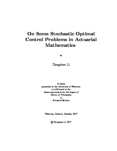 On Some Stochastic Optimal Control Problems in Actuarial Mathematics