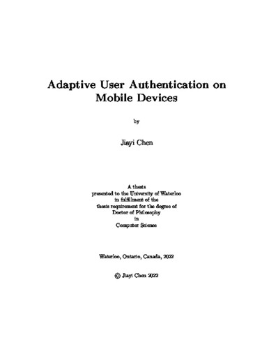 Adaptive User Authentication on Mobile Devices