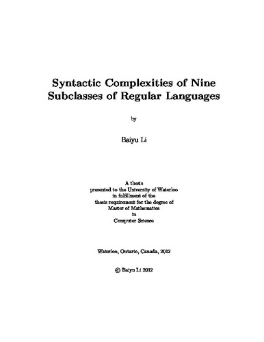 The syntactic complexity of a regular language is the cardinality of its syntactic semigroup. The syntactic complexity of a subclass of the class of regular languages is the maximal syntactic complexity of languages in that class, taken as a function of the state complexity n of these languages.