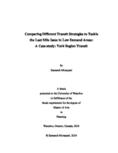 Comparing different transit strategies to tackle the last-mile issue in low demand areas Case study: York Region Transit