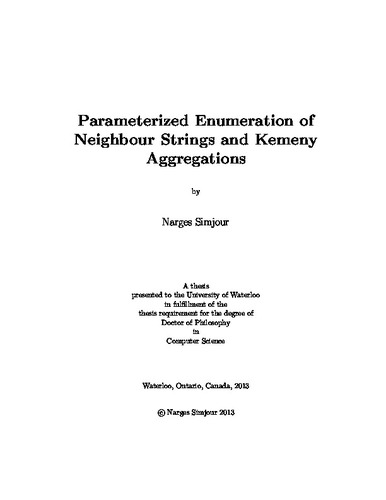 complexity setting. We obtain competitive parameterized algorithms to enumerate all, as well as several of, the solutions for two related problems Neighbour String and Kemeny Rank Aggregation. In both problems, the goal is to find a solution that is as close as possible to a set of inputs (strings and total orders, respectively) according to some distance measure.