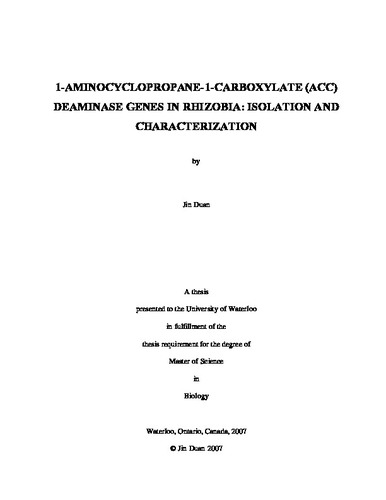 1-AMINOCYCLOPROPANE-1-CARBOXYLATE (ACC) DEAMINASE GENES IN RHIZOBIA: ISOLATION AND CHARACTERIZATION
